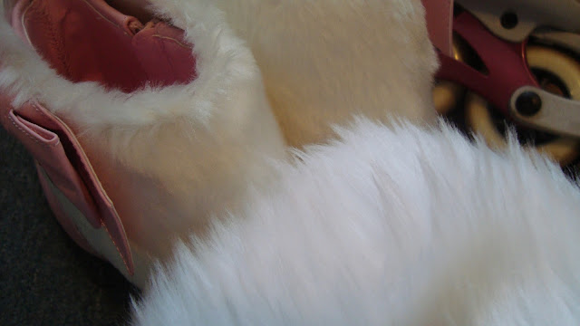 I do have a little complain about the fur though. I bought faux fur at the fabric shop where I work for a few bucks and wanted to compare it with the boots' fur. I'm disapointed in the fur they used for the boots It looks cheaper than what it looked like on the official picture. I really wanted a fluffy type of fur. I might remake the fur toppers and glue the bows to them. I might also add a zipper or velcro so they can be removed more easilly.